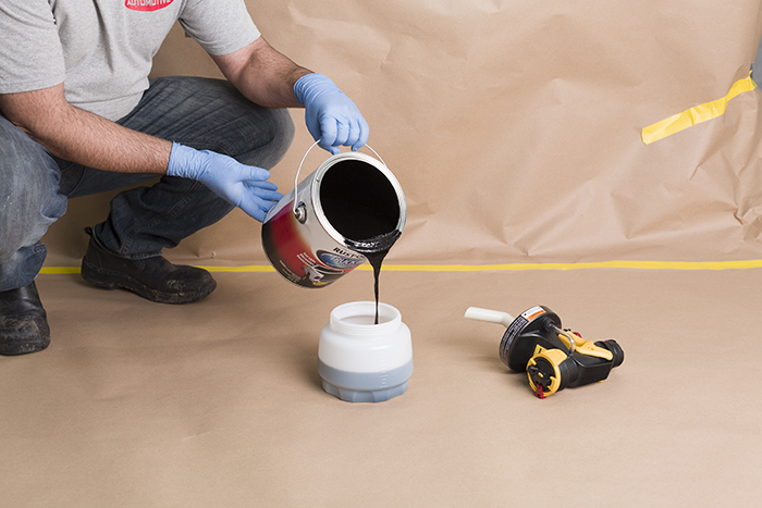 Mix thoroughly to help ensure any settled pigment is dispersed. Do not thin or tint. Apply with a high quality solvent resistant foam roller or the Rust-Oleum Truck Bed Applicator Kit