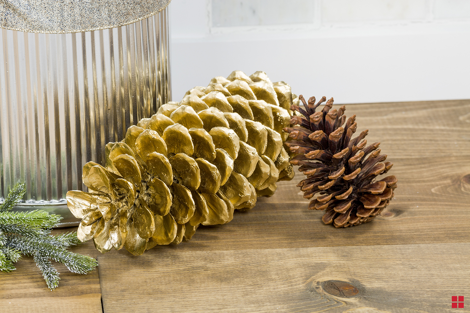Mixed metallics give a trendy look to your Christmas fireplace mantel. Spray paint indoor holiday décor with Rust-Oleum® Stops Rust® Bright Coat Metallic Finish in Gold and Chrome Metallic for an updated style.