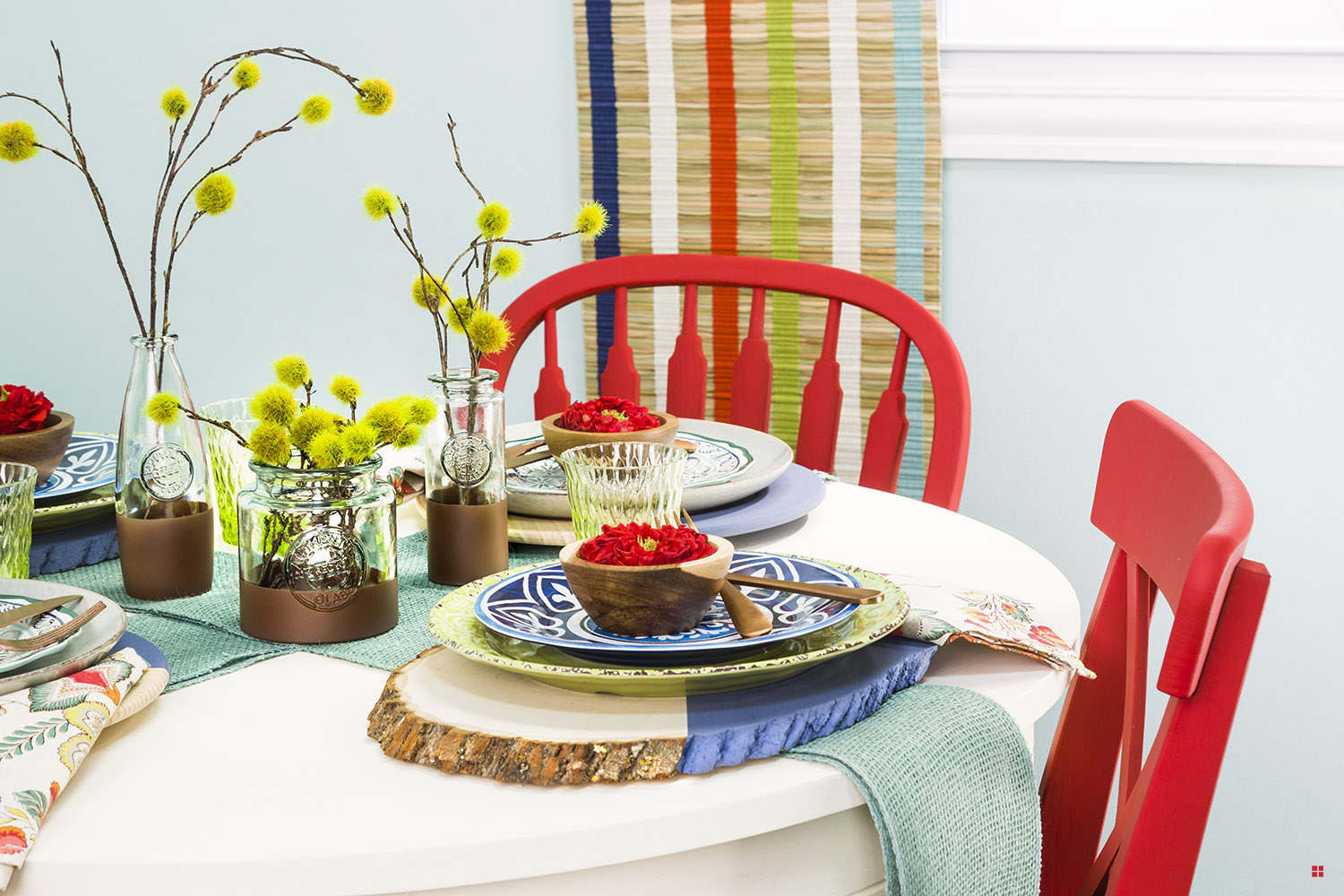 Bring the rustic look of a modern farmhouse to your space with Rust-Oleum's Chalked Paint. The table, chairs, and décor on this tablescape will intrigue your guests. Invite them for a late season barbecue and let your statement pieces start the conversation.