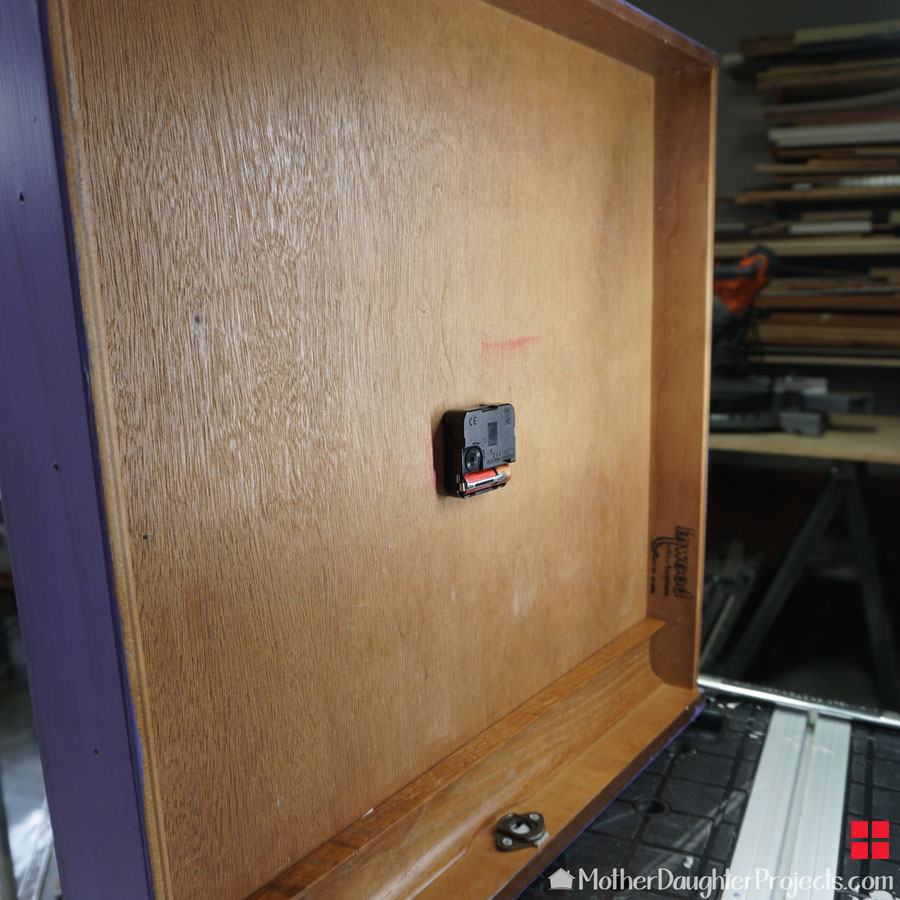 Step 2: Spray paint the drawer in 2X Ultra Cover Spray Paint according to the directions on the can. Let spray paint dry for about 1 hour. The bottom of the drawer will be the front of the clock, which makes room for the clock mechanism on the underside.