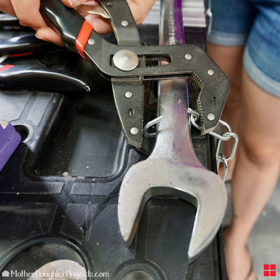 Step 15: Secure the chain to the large wrench with pipe straps.
