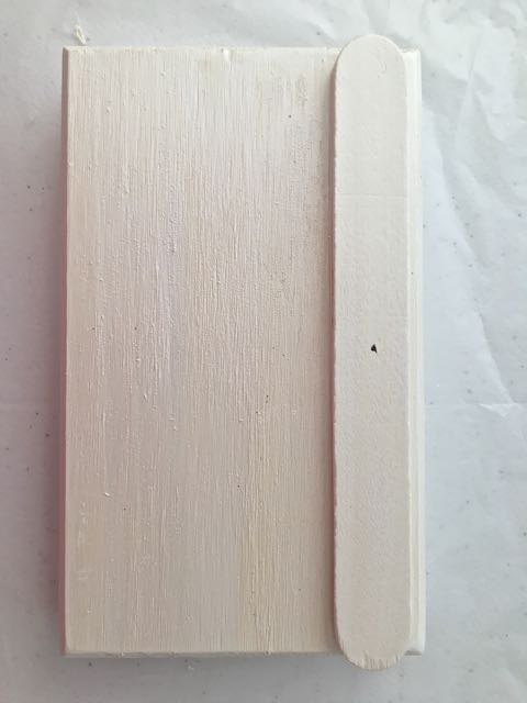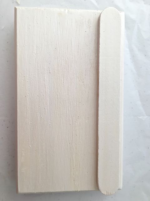 Glue layered sticks on one long edge of the wood blocks. When the glue is set, paint the block and attached sticks with the cream paint. Imperfections in the wood will be hidden in the finished project.