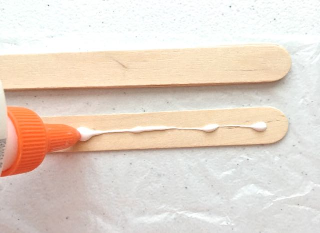 Use a craft stick to apply Snow-Tex. Apply it to cover the stacked craft sticks only.