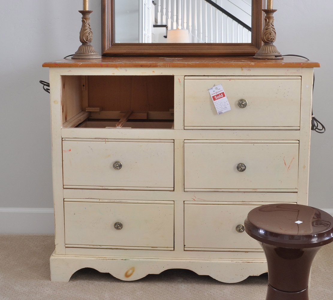 Blogger Project - Dress up your entryway with some farmhouse style. New paint and hardware make this dresser look brand new. Visit Fancy Farmgirls blog to learn more about this project makeover.