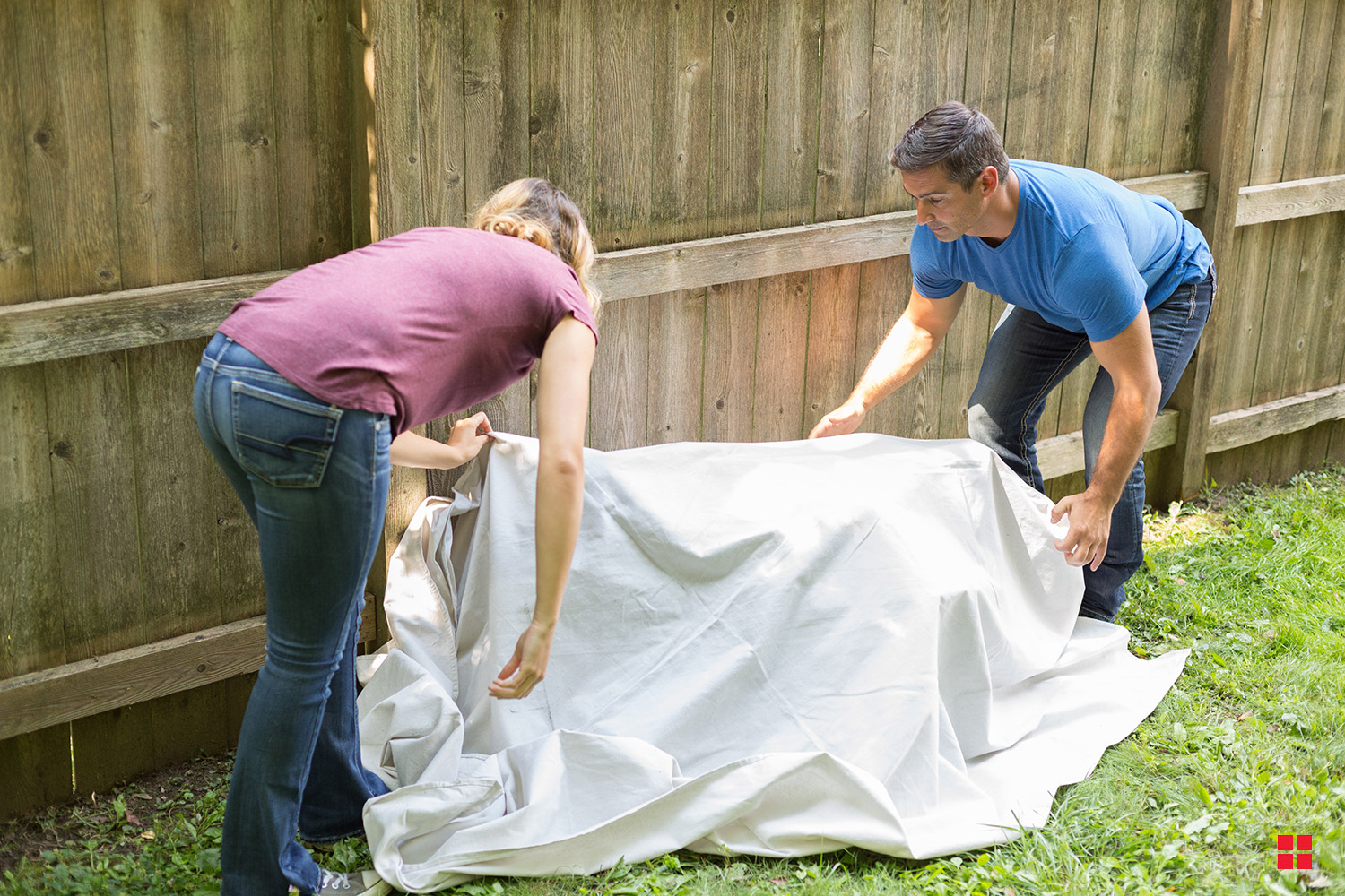 PREP: Trim grass near the fence to expose as much of the fence as possible. Clean wood fence with a wire brush to remove moss, lichen and debris. Wash fence with water and a proper fence wash solution, if needed, and let dry before coating. Cover plants that you don't want overspray to reach.