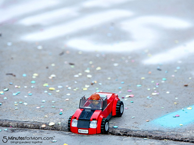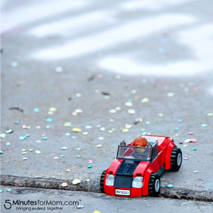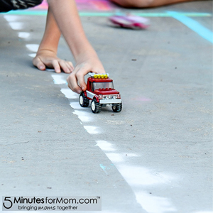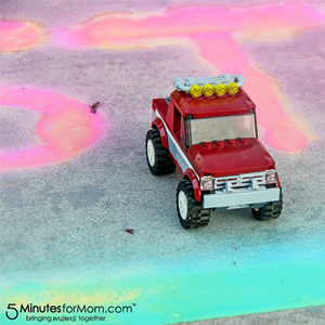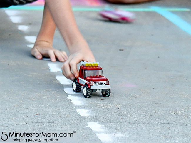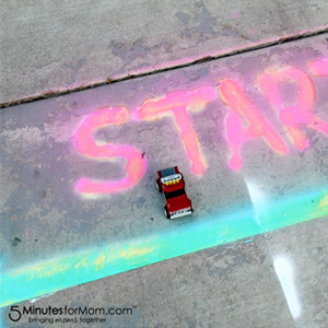 With summer quickly approaching and the days getting warmer, it is time to get outside and play! Help your kids create a colorful, temporary racetrack on your driveway.